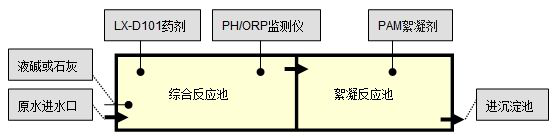 綜合廢水使用我公司LX-D101電鍍廢水處理劑處理后達標排放,以下是該公司綜合廢水處理工藝流程圖: