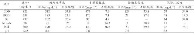 產生的綜合廢水色度高、pH高、COD高、BOD低,并含有少量硫化物。綜合廢水的B/C約為0.34,可生化性能一般。